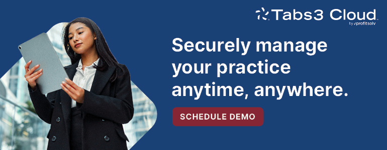 Tabs3 Cloud is a fully integrated practice management suite that includes Tabs3 Billing, Financials, and PracticeMaster. With Tabs3 Cloud, your Tabs3 Software data is accessible from any internet connection, at any time. Read More...